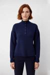 PayBuy Kadın Lacivert Regular Kalıp Dik Yaka Düşük Kol Triko Kazak Günlük Şıklık Ve Konfor Sunar Kaliteli