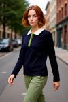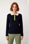 PayBuy Kadın Lacivert Renk Bloklu Polo Yaka Taş Düğmeli Triko Kazak Kış Sezonu İçin Şık Ve Konforlu Bir