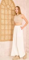 En 34*2 (68)cm . Bol kalıptır, resimdeki kadar bol olmasını istemiyorsanız bir beden küçük sipariş vermeniz önerilir. Ürün boyu 36 beden için 108 cm. dir. Her bedende 1er cm. artarak büyür. Bel 36 beden için 68 cm. Her bedende 1 er cm. büyür.