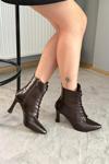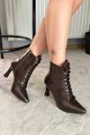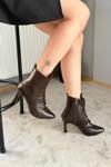 - Kadın Leila 9 cm İnce Topuklu Bağcık Detaylı Fermuarlı Bot