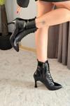 - Kadın Leila 9 cm İnce Topuklu Bağcık Detaylı Fermuarlı Bot