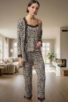 PayBuy Kadın Leopar Desenli 3lü Pijama Takımı İnce Askılı Kaşkorse Kumaştan Rahat Ve Şık Özenle Seçilmiş