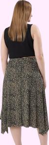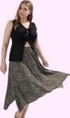 Midi boyu, farklı vücut tiplerine ve boy uzunluklarına uyum sağlar. A-line kalıp ve asimetrik kesim, eteğe modern ve şık bir hava katıyor. Haki rengi ve leopar deseni, benzersiz ve dikkat çekici bir görünüm sunuyor. Örme kumaş yapısı, rahatlık ve nefes alabilirlik sağlıyor. Cepsiz ve kemersiz tasarımı ise minimal ve şık bir görünüm yaratıyor.