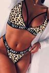 Kadın Leopar Desenli Yazı Detaylı Ipli Sütyen Takımı