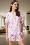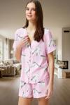 PayBuy Kadın Leylek Desenli Viskon Pijama Takımı Şortlu Düğmeli Regular Kalıp Yazlık Rahat Ve Şık Görünüm