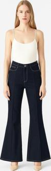 Yüksek kaliteli denim kumaştan üretilmiştir. İspanyol paça yüksek bel modeldir. Esnek likralı bir kumaştır. İnce rahat bir kumaş yapısı vardır. Arka cepleri aktif değildir. Ön cepleri kullanılmaktadır. Xs ürün boy uzunluğu kemer dahil 112 cm dir. Bel genişliği 33 cm'dir. Basen genişliği 42,5 cm'dir. İç boy uzunluğu 84,5 cm'dir. Paça genişliği 31 cm'dir. Bedenler arası 2 cm fark bulunmaktadır fakat iç boy uzunluğu bütün bedenlerde 84,5 cm'dir.