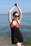 Göz Alıcı Tasarım: Kırmızı üzerindeki puan desenleri, sade siyah etek ile mükemmel uyum sağlıyor. Plajda veya havuz kenarında şıklığınızla ışıldayın.
