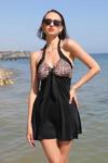 Çamaşır Kenti markasının yaratıcı tasarımı ile öne çıkan Kadın Likralı Şortlu Fiyonklu Elbise Mayo Siyah, plaj şıklığınızı tamamlayacak ideal bir seçenektir.