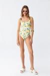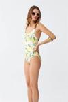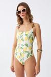 Baharın enerjisini yansıtan Çamaşır Kenti Kadın Limon Desenli Aksesuar Askılı Tek Parça Mayo ile plajda şıklığınızı ön plana çıkarın!