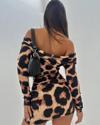 Kadın Madonna Mendil Yaka Leopar Desen Mini Elbise