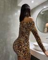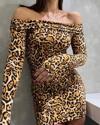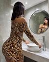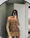 Kadın Madonna Mendil Yaka Leopar Desen Mini Elbise
