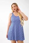Kadın Mavi Desenli Büyük Beden Elbise Mayo