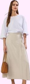 Bu zarif ve şık A-line etek, Ramadan koleksiyonumuzdan özel olarak seçilmiş bir parça. Maxi boyuyla ve düz tasarımıyla zamansız bir şıklık sunuyor. Yüksek kaliteli dokuması sayesinde hem rahat hem de zarif bir görünüm elde edersiniz. İş hayatınızda veya günlük kombinlerinizde kusursuz bir uyum yakalayacak bu etek, gardrobunuzun vazgeçilmez bir parçası olacak. Rahat ve nefes alan kumaşıyla gün boyu konfor sağlar. Astarsız tasarımıyla hareket özgürlüğünüzü kısıtlamaz. A-line kalıbı her vücut tipine mükemmel bir uyum sağlarken, bel kısmındaki bağcık detayı ile şıklığınıza şıklık katmaktadır. Sade ve şık tasarımı, farklı üstlerle kolayca kombinlenebilir. İş görüşmelerinden özel davetlere kadar her ortamda kendinizi özel hissedeceksiniz.