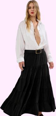 Mizalle Siyah A Kesim Kemerli Kalın Volanlı Maksi Etek