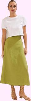 Bu özel eteğin detayları şöyle; Yumuşak ve esnek yapısıyla gün boyu rahatlık sunar. A-line kesimiyle vücut hatlarınızı güzel bir şekilde vurgular. Lilyum dokuma tekniğiyle üretilen kumaşı, hem şık hem de dayanıklıdır. Maxi boyu sayesinde bacaklarınızı daha uzun ve ince gösterir. Haki rengi, her türlü kombin ile uyumludur.