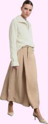 Etek, 36-44 beden aralığında mevcuttur. Boyu yaklaşık 110 cm'dir. Bej rengiyle her gardıroba uyum sağlayacak bir parçadır. Hem günlük hem de özel davetler için mükemmel bir seçimdir.