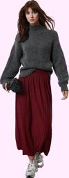 Günlük stilinizi tamamlayacak şık ve rahat bir etek arayışınız varsa, bu bordo yüksek bel pilise etek tam size göre! Zarif pilise detayları ve akıcı kumaşı ile göz alıcı bir görünüm sunan etek, gün boyu konforlu bir kullanım sağlar. Yüksek beli sayesinde vücudunuzu mükemmel bir şekilde sarar ve belinizi ince gösterir. Esnek yapısı sayesinde hareket özgürlüğünüzü kısıtlamaz. Kemersiz tasarımı ile hem şık hem de pratiktir. Maxi boy uzunluğu ile her mevsim kombinlerinizi tamamlayabilirsiniz. Hafif ve nefes alabilir kumaşı yaz aylarında serin kalmanıza yardımcı olurken, kış aylarında ise kalın çoraplar ve botlarla kombinlenebilir. Doğal ve şık duruşuyla her ortama uyum sağlar. Hem günlük hayatta hem de özel davetlerde rahatlıkla tercih edebileceğiniz bu etek, gardırobunuzun vazgeçilmez parçalarından biri olmaya aday.