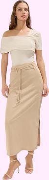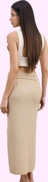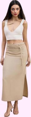 Maxi boyu ile boyunuzu uzatacak olan etek, farklı üstlerle kombinleyerek her ortama uygun şıklığı yakalamanızı sağlar. Yandan yırtmaç detayı hareket kabiliyetini artırırken, kemer detayı ile belinizi ince göstererek daha feminen bir görünüm sunar. Bu etek, yaz aylarında rahatlığı ve şıklığı bir arada arayan modern kadınlar için ideal bir seçimdir. Her vücut tipine uyum sağlayan tasarımı ile kendinizi güvende ve özgüvenli hissedeceksiniz. Hafta sonu kahvelerinizde, arkadaş buluşmalarınızda veya yaz akşamlarında giyebileceğiniz bu etek, gardırobunuzun kurtarıcı parçası olacak.