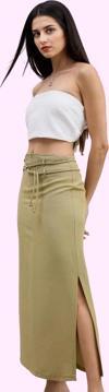 Maxi boyu ile boyunuzu uzatacak olan etek, farklı üstlerle kombinleyerek her ortama uygun şıklığı yakalamanızı sağlar. Yandan yırtmaç detayı hareket kabiliyetini artırırken, kemer detayı ile belinizi ince göstererek daha feminen bir görünüm sunar. Bu etek, yaz aylarında rahatlığı ve şıklığı bir arada arayan modern kadınlar için ideal bir seçimdir. Her vücut tipine uyum sağlayan tasarımı ile kendinizi güvende ve özgüvenli hissedeceksiniz. Hafta sonu kahvelerinizde, arkadaş buluşmalarınızda veya yaz akşamlarında giyebileceğiniz bu etek, gardırobunuzun kurtarıcı parçası olacak.