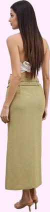 Bu sezonun trend kumaşı keten karışımı ile tasarlanmış, şık ve rahat bir maxi etek. Yandan yırtmaç detayı ile hareketli bir görünüm sunarken, haki rengi ile her türlü kombininize uyum sağlayacak. Hem günlük hayatta hem de özel davetlerde rahatlıkla kullanabileceğiniz bu etek, yaz aylarının vazgeçilmezi olacak. Keten görünümlü dokuma yapısı nefes alabilirliği ve konforu bir araya getirirken, kalem silüeti vücut hatlarınızı zarifçe ortaya koyar. Yüksek kaliteli malzemelerden üretilen etek, uzun süreli kullanım için dayanıklıdır. Makinede kolayca yıkanabilir özelliği ile pratik bir kullanım sağlar.