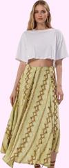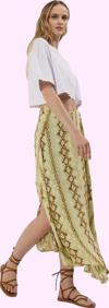 Bu çok yönlü eteği, düz renkli bir tişört ile kombinleyerek şık ve sade bir tarz oluşturabilirsiniz ya da daha renkli bir üst ile özgür ruhlu bir görünüm elde edebilirsiniz. Her vücut tipine uyum sağlayan rahat kalıbı ile tüm gün rahatlıkla hareket edebilirsiniz. Eteğin bakımı oldukça kolaydır; yıkama talimatlarını izleyerek uzun yıllar boyunca kullanabilirsiniz. Yaz aylarınızın en gözde parçası olacak bu eteği kaçırmayın!