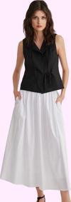 Rahatlığı ve şıklığı bir arada sunan bu beyaz maxi etek, gardırobunuzun yeni favorisi olacak. Yüksek bel tasarımı ve kloş kesimiyle vücudunuzu sararak kusursuz bir görünüm yaratır. Nefes alan dokuma kumaştan üretilen etek, gün boyu konfor sağlar. Pamuk ve polyester karışımı olan kumaş yapısı dayanıklı ve kolay temizlenir. Düz deseniyle her türlü üst giyimle mükemmel bir uyum yakalar. Hem günlük hayatta hem de özel günlerde tercih edebileceğiniz bu çok yönlü etek, tarzınıza sofistike bir dokunuş katacak.