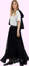 Bu zarif ve rahat maxi etek, günlük yaşamınızda şıklığı ve konforu bir araya getirmek isteyen kadınlar için mükemmel bir seçim. Yüksek kaliteli polyester kumaştan üretilen etek, yumuşak dokusuyla gün boyu rahatlık sunar. Kloş kesimiyle vücut hatlarınıza mükemmel uyum sağlarken, kemer detayı belinizi ince göstererek silüetinize zarif bir görünüm kazandırır. Astarı sayesinde teninize temas eden yüzeyin yumuşaklığı ve rahatlığı artırılmış olup, gün boyunca özgürce hareket etmenizi sağlar. Cepsiz tasarımıyla minimal bir görünüm sunan etek, düz rengi sayesinde farklı kombin seçenekleriyle uyum sağlar. Siyah rengiyle her mevsim ve her ortamda kullanabileceğiniz bu çok yönlü etek, gardrobunuzun vazgeçilmez parçalarından biri olacak. Makinede yıkanabilir özelliğiyle pratik kullanım sağlar.