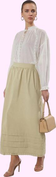 Bu haki renkli, maxi boy kloş etek, günlük şıklığınıza sofistike bir dokunuş katmak için tasarlandı. Gabardin kumaştan üretilen etek, hem rahatlığı hem de şıklığı bir arada sunuyor. Etek ucu dantel detayı, eteğe romantik bir hava katarken, kloş kesimi her vücut tipine uyum sağlıyor. %50 pamuk ve %50 polyester karışımından oluşan kumaş yapısı, nefes alabilir ve dayanıklı bir kullanım sunuyor. Yüksek bel tasarımı ile belinizi ince gösterirken, maxi boyu ile de bacaklarınızı zarifçe ortaya koyuyor. Hem günlük kombinlerinizde hem de özel davetlerinizde rahatlıkla kullanabileceğiniz bu etek, gardırobunuzun vazgeçilmez parçalarından biri olacak. Eteği jean ceket, tişört veya bluz ile kombinleyerek hem spor hem de şık bir görünüm elde edebilirsiniz. Makinede düşük ısıda yıkayabilirsiniz.