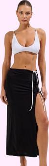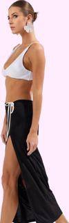 Bu göz alıcı siyah maxi etek, yaz aylarının plaj şıklığını yeniden tanımlıyor! Yumuşak örme kumaştan üretilen etek, gün boyu konfor sunarken, yan yırtmaç detayı ve şık bağlama detayıyla feminenliğinizi vurgular. Plajda, havuz başında veya yaz akşamlarında rahatlıkla kullanabileceğiniz bu etek, gardırobunuzun yeni favorisi olacak.