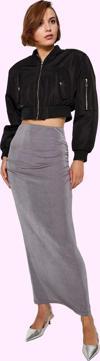 Bordo rengi, yüksek beli ve kalem kalıbıyla dikkat çeken bu maxi örme etek, günlük kombinlerinizin şıklık ve rahatlık dozunu artırmak için tasarlandı. Parlak yüzeyi ve yumuşak dokusuyla teninize mükemmel uyum sağlayan etek, gün boyu konfor sunar. Büzgü detaylı tasarımıyla zarif bir duruş sergilerken, esnek yapısı sayesinde hareket özgürlüğünüzü kısıtlamaz. Doğal ve şık görünümüyle, gömlekler, tişörtler ve bluzlarla harika bir uyum yakalar. Hafif ve nefes alabilir yapısıyla yaz aylarının vazgeçilmez parçası olacak bu etek, hem günlük hayatta hem de özel davetlerde stilinizi tamamlayacaktır. Makinede kolayca yıkanabilir özelliğiyle de pratik kullanım sunar. Yüksek kaliteli polyester ve elastan karışımı kumaşı, uzun ömürlü kullanım sağlar. Bu şık ve modern etekle, zamansız bir şıklığı her zaman yanınızda taşıyın.