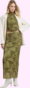 PayBuy Kadın Maxi Tül Etek Soyut Desenli Beli Lastikli Astarlı Örme Kumaş Yaz Aylarının Vazgeçilmezi