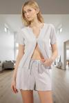 Rahatlığı ve şıklığı bir arada arayan kadınlar için ideal olan bu pijama takımı, yumuşak örme kumaşından üretilmiştir. Gri melenj rengi, her tarza uyum sağlar. Düğmeli gömlek ve şık şorttan oluşan takım, gün boyu konfor sunar. Nefes alan yapısıyla yaz aylarında serin tutarken, hafif ve ince dokusuyla sizi rahatsız etmez. Kaşkorse dokuma teknikleriyle üretilen takım, kaliteli ve dayanıklıdır. Regular kalıbıyla her vücut tipine uyum sağlayan takım, evde rahatça vakit geçirmek için mükemmel bir seçenektir. Makinede yıkanabilir özelliği ile pratik kullanım sunar.