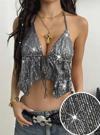 Kadın Metalik Gümüş Pul Detaylı Crop Askılı Önden Bağlama 5093