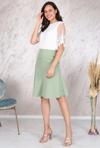 Diz üstü, astarlı, rahat ve terletmez kumaşla üretilmiş, parçalı kloş etek.