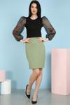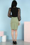 Bu şık kalem etek, ofis şıklığından günlük kullanıma kadar her ortamda rahatlıkla kullanılabilir. Üst olarak basic tişörtler veya şık bluzlar ile kombinleyerek farklı stiller yaratabilirsiniz. Topuklu ayakkabılarla zarif bir görünüm elde edebilirsiniz.