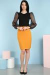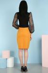 Bu şık kalem etek, ofis şıklığından günlük kullanıma kadar her ortamda rahatlıkla kullanılabilir. Üst olarak basic tişörtler veya şık bluzlar ile kombinleyerek farklı stiller yaratabilirsiniz. Topuklu ayakkabılarla zarif bir görünüm elde edebilirsiniz.
