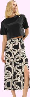 Etek, 36-44 beden aralığında mevcuttur. Bu zarif eteği, düz renkli bluzlar, tişörtle veya şık bir gömlek ile kombinleyerek farklı stillere uyum sağlayabilirsiniz. Günlük hayatta, plajda ya da akşam yemeklerinde rahatlıkla kullanabilirsiniz. Yüksek kaliteli malzeme ve işçiliğiyle uzun yıllar sorunsuz bir şekilde kullanabilirsiniz. Makinede yıkamaya uygundur.