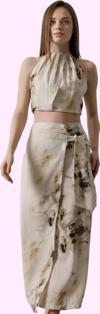 Yüksek kaliteli %100 pamuk kumaşı ile üretilen etek, yumuşak dokusu ve nefes alabilir özelliği sayesinde gün boyu konfor sağlar. Batik desenin özgünlüğü, eteğe modern ve dikkat çekici bir hava katarken, yüksek bel tasarımı silüetinizi daha ince ve uzun gösterecek. Sarong silüeti ise hem modern hem de feminen bir görünüm sunuyor. Kolay ütülenebilir ve makinede yıkanabilir özelliği sayesinde bakımı oldukça pratik.