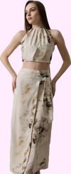 Yaz aylarının vazgeçilmezi olan bu bej batik desenli anvelop etek, rahatlığı ve şıklığı bir araya getiriyor. Yüksek beli ve midi boyu ile her vücut tipine uyum sağlayan etek, %100 pamuk kumaşı sayesinde gün boyu konfor sunuyor. Keten karışımlı dokuma kumaşı nefes alabilir ve hafif bir yapıya sahip. Batik desen ise eteğe modern ve özgün bir görünüm kazandırıyor. Casual tarzınızı tamamlayacak bu etek, günlük kombinlerinizin yıldızı olacak. Şık ve rahat tasarımı ile hem şehirde hem de tatilde rahatlıkla kullanabileceğiniz bu etek, yaz sezonunun en gözde parçalarından biri.