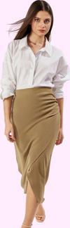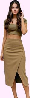 Bu etkileyici haki rengi midi etek, gardrobunuzun yeni gözdesi olacak! Yüksek kaliteli %100 viskoz dokuma kumaştan üretilen etek, gün boyu süren konfor ve şıklığı bir araya getiriyor. Yandan yırtmaç detayı ile hareket özgürlüğünü sağlarken, zarif midi boyu her vücut tipine mükemmel uyum sağlıyor. Casual ve günlük kombinlerinizin vazgeçilmezi olacak bu etek, hem şık hem de rahat bir görünüm sunuyor. Astarsız tasarımıyla yaz aylarında serin kalmanıza yardımcı olurken, finike dokuma kumaşıyla da kalitesini uzun süre koruyor. İster spor ayakkabılarınızla ister şık topuklularınızla kombinleyerek farklı stillere uyum sağlayabilirsiniz.