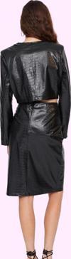Sizi özel hissettirecek, şık ve zarif bir etek arıyorsanız doğru yerdesiniz! Bu siyah midi etek, yüksek kaliteli suni yılan derisi dokusuyla göz kamaştırıcı bir görünüme sahip. Yüksek beli ve kalem kesimiyle vücut hatlarınızı mükemmel bir şekilde ortaya koyarken, cepsiz tasarımıyla minimal ve şık bir duruş sergiliyor. Gece çıkışlarınızdan özel davetlerinize kadar birçok ortamda rahatlıkla kullanabileceğiniz bu etek, stilinize sofistike bir dokunuş katacak.
