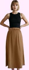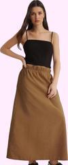 Şıklığı ve rahatlığı bir araya getiren bu midi boy kloş etek, günlük yaşamınızın vazgeçilmezi olacak. Yüksek bel tasarımıyla kusursuz bir siluet oluştururken, kahverengi rengi her kombininize şıklık katacak. Hafif ve nefes alabilen dokuma kumaş yapısıyla gün boyu konfor sunar. Casual ve günlük tarzınıza uygun bu etek, yaz aylarının sıcak günlerinde serin kalmanıza yardımcı olur. Mükemmel bir uyum sağlayan yüksek bel tasarımı, vücut hatlarınızı zarifçe ortaya koyarken, kloş modeli ise hareket özgürlüğü sunar. Doğal ve şık görünümüyle, farklı tarzlarda kombinlenebilir. Bir tişört ve spor ayakkabıyla spor bir şıklık yakalayabilir veya daha şık bir görünüm için bluz ve topuklularla tamamlayabilirsiniz.