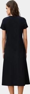 %100 pamuk örme kumaştan üretilen bu elbise, nefes alabilir ve yumuşak dokusuyla gün boyu konfor sunar. Bisiklet yakası ve düşük kol detayları ile şıklığı ön plana çıkarırken, cep detayı da pratik bir kullanım sağlar. Midi boy uzunluğu ve T-shirt elbise kalıbıyla her vücut tipine uyum sağlar. Günlük kullanım için ideal olan bu elbiseyi spor ayakkabılarla rahat bir görünüm elde ederken, topuklu ayakkabılarla daha şık bir tarz oluşturabilirsiniz.