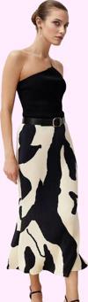 PayBuy Kadın Midi Boy Piliseli Etek Soyut Desen Yüksek Bel Kemerli Casual Yaz Aylarının Vazgeçilmezi