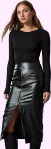 Kalem kalıbı ile vücut hatlarınızı ön plana çıkarırken, suni deri kumaşı size şık ve modern bir görünüm kazandırır. Fermuar detayı ile hem modern hem de pratik bir kullanım sunar. Etek, cepsiz tasarımıyla minimal ve zarif bir tarzı benimseyen kadınlar için idealdir. Kemer detayı ile belinizi daha ince gösterecek ve silüetinizi vurgulayacaktır. Özellikle iş hayatında veya resmi davetlerde şık bir görünüm elde etmenizi sağlar. Aynı zamanda günlük kombinlerinizde de rahatlıkla kullanabilir, tarzınıza özel bir dokunuş katabilirsiniz. Günlük kullanım için ideal olan bu etek, her mevsim kombinlerinizde yerini alacak.