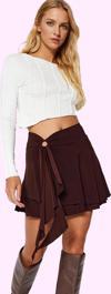Kaliteli örme kumaşı ile gün boyu konfor sunan bu etek, yüksek bel tasarımı sayesinde vücut hatlarınızı kusursuz bir şekilde ortaya koyar. A-line kesimi ile her vücut tipine uyum sağlar. Aksesuar detayları ve bordo rengi ile şık ve dikkat çekici bir görünüm elde edersiniz. Hafif ve nefes alabilen yapısıyla yaz aylarında serin kalmanıza yardımcı olur. Düz deseni sayesinde her tarza uyum sağlar. Mini boyu ile modern ve cesur bir tarz yaratabilirsiniz.