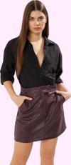 PayBuy Kadın Mini A Line Suni Deri Etek Yüksek Bel Cepsiz Şık Tasarım Günlük Kullanım Özel Günler