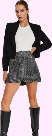 Zarif ve şık görünümüyle dikkat çeken bu mini etek, günlük kombinlerinizin vazgeçilmezi olacak. A-line kalıbı ile her vücut tipine uyum sağlayan etek, yüksek kaliteli tüvit kumaştan üretilmiştir. Düğme detaylı tasarımı ile modern ve trend bir görünüm sunar. Hafif ve nefes alabilir yapısıyla gün boyu rahatlık sağlar. Cepsiz tasarımıyla minimal bir şıklık sunarken, kısa boyu ile bacaklarınızı daha uzun ve ince gösterir. Casual tarzınıza uyum sağlayacak bu etek, farklı renk ve desenlerdeki üstlerinizle kombinleyerek tarzınızı yansıtabilirsiniz. Soğuk kış günlerinde, ince bir tayt veya çorap ile sıcak tutarken tarzınızdan da ödün vermenizi engeller. Bu özel tasarım etek, gün boyu şık ve konforlu bir deneyim sunmak için tasarlanmıştır. Yüksek kaliteli materyaller kullanılarak üretilmiş olup, uzun süreli kullanım için dayanıklıdır. Makinede yıkama talimatlarına uyarak uzun süre ilk günkü gibi kullanabilirsiniz.