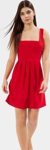 Yaz aylarının vazgeçilmez parçası olacak bu mini elbise, şıklığı ve konforu bir araya getiriyor. Finike dokuma polyester karışımı kumaştan üretilen elbise, nefes alabilir yapısıyla gün boyu rahatlık sunuyor. Kare yaka detayı ve skater silüetiyle modern bir görünüm elde ederken, belden açılan eteğiyle feminen bir hava katıyor. Hem günlük kullanıma hem de özel davetlere uygun olan bu elbise, her ortamda şıklığınıza şıklık katacak.