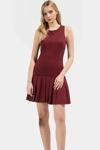 Yaz aylarının vazgeçilmez parçası olacak bu bordo mini elbise, şıklığı ve rahatlığı bir araya getiriyor. Pili detaylı eteği ile feminen bir görünüm sunarken, vücuda oturan kesimiyle de zarif bir siluet oluşturuyor. Nefes alabilen örme kumaş yapısı, gün boyu konforlu bir kullanım sağlıyor. Hem günlük hayatta hem de özel davetlerde rahatlıkla kullanabileceğiniz bu elbise, gardrobunuzun en gözde parçalarından biri olacak.